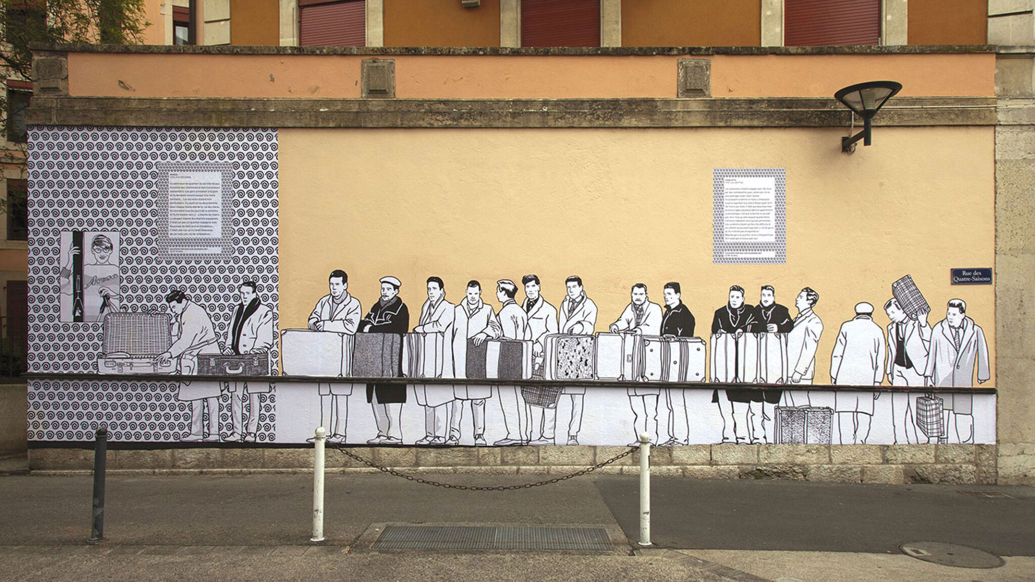 Pour le collectif, les quartiers deviennent un lieu d’écriture où évoluent des personnages-héros issus des rencontres avec les habitants. Ces guides munis de leurs accessoires revivent les actions du passé, parlent de leur présent et mettent en œuvre les idées des habitants. Des interventions revisitent le territoire urbain pour repenser la ville comme un paysage de rêve où se mêlent mémoire du passé et vision du futur par le biais de collages où le rêve et l’imaginaire croisent la réalité.